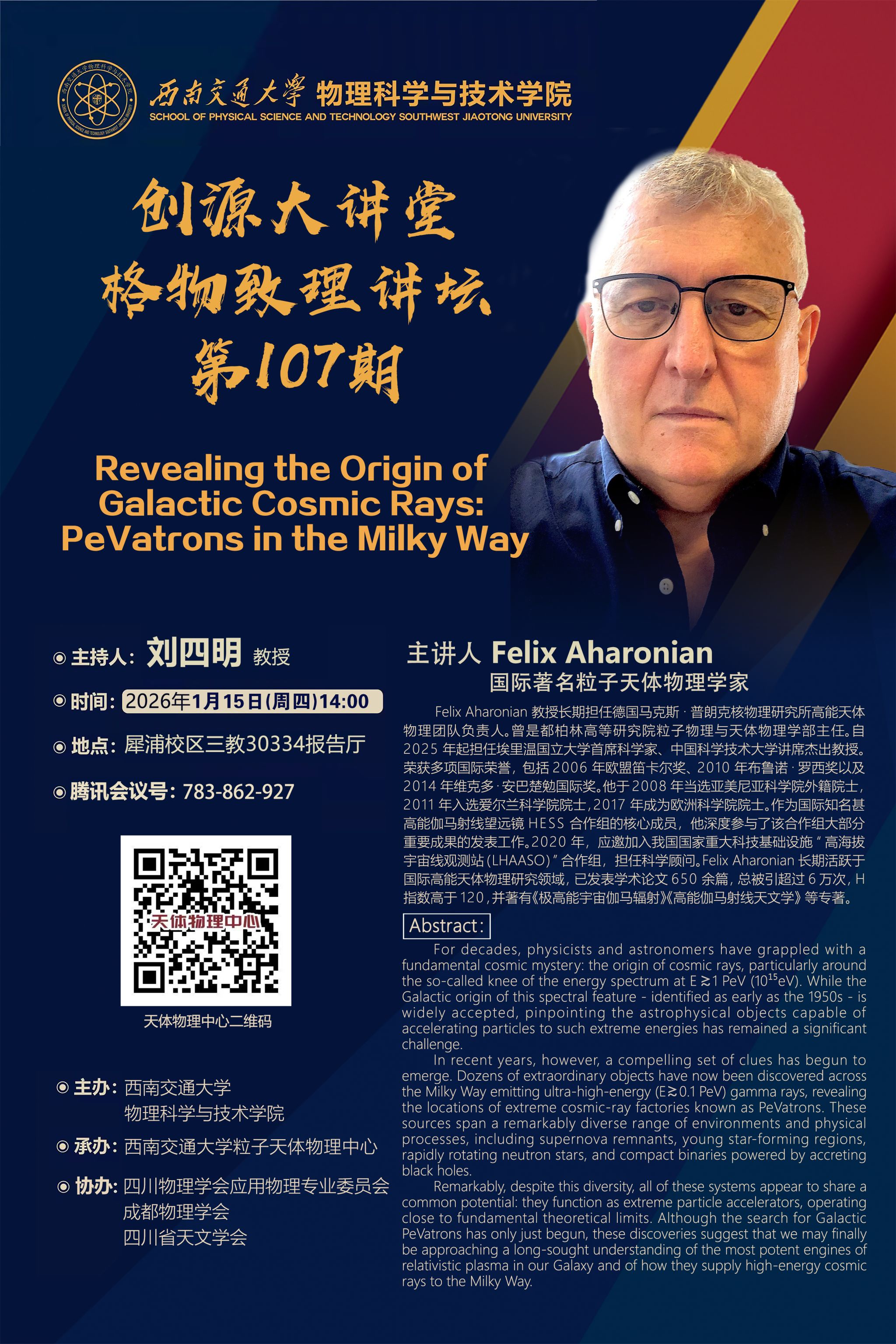 主讲人:Felix Aharonian 国际著名粒子天体物理学家