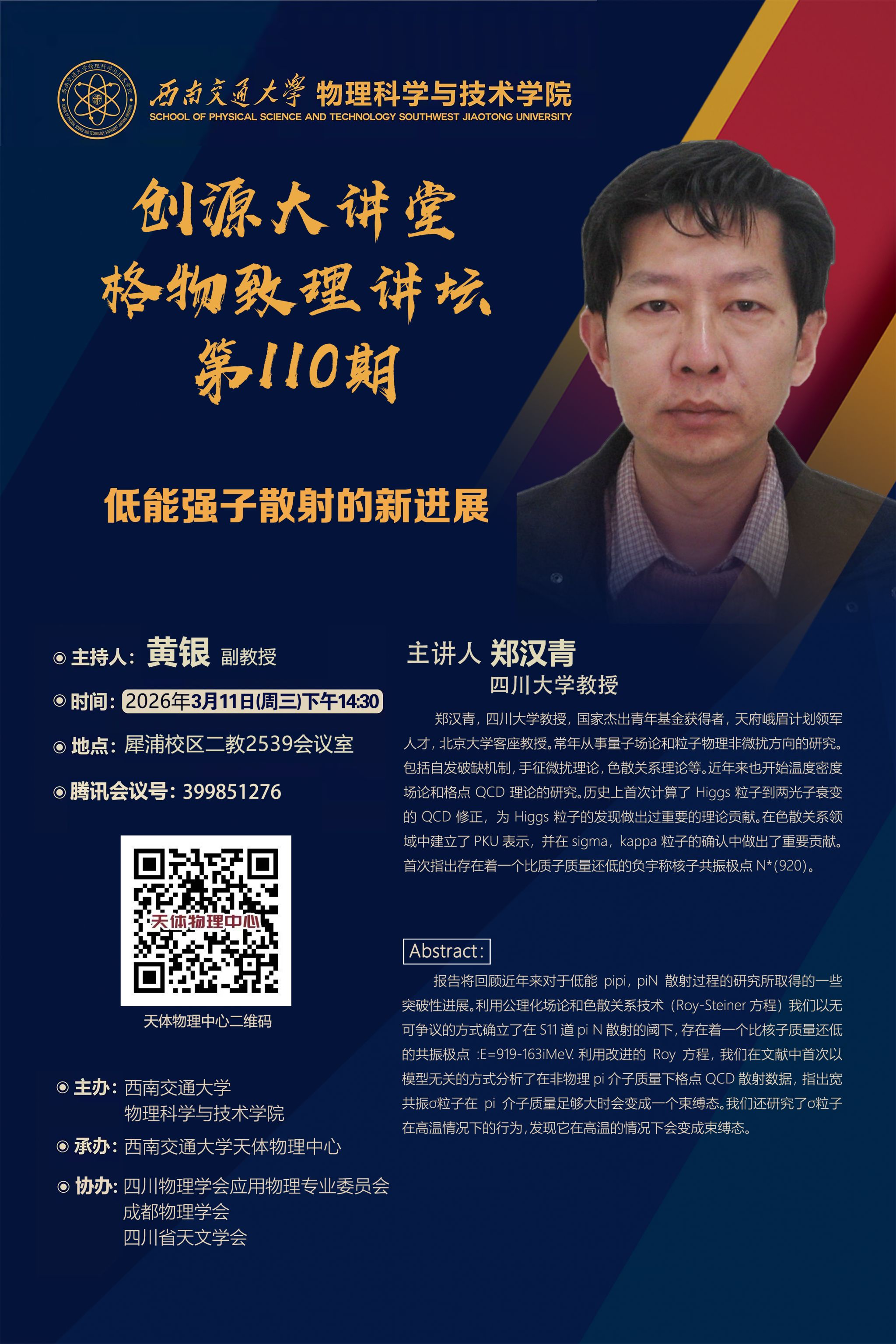 报告题目: 低能强子散射的新进展